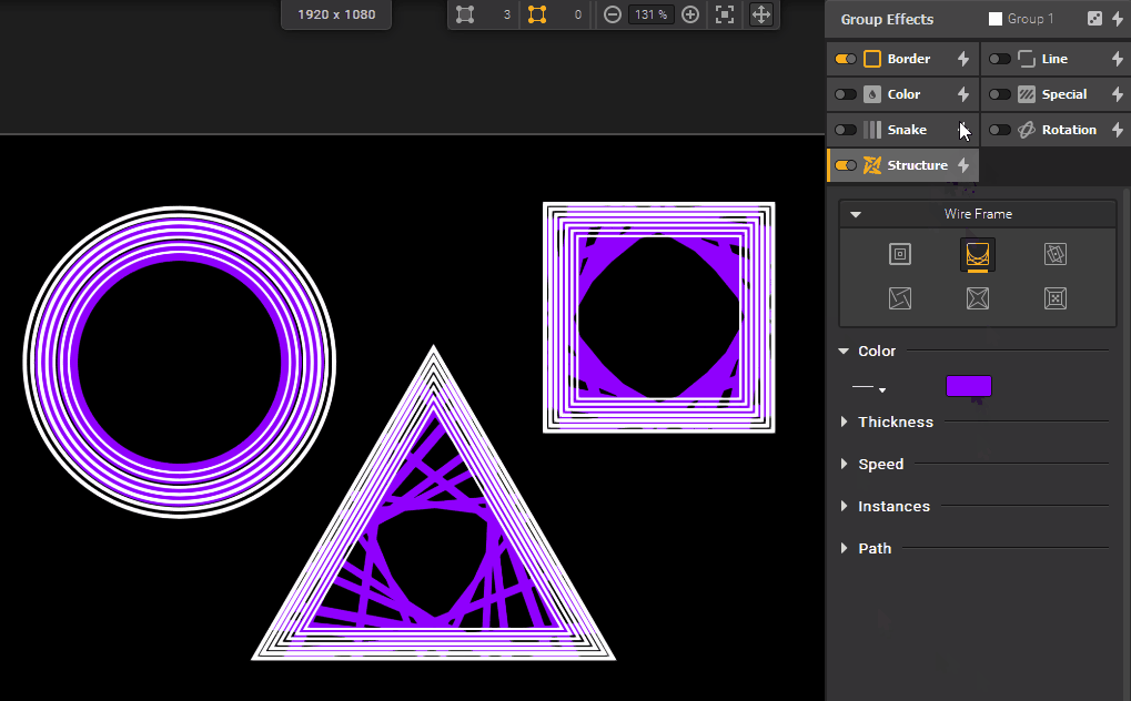 Nota: o artigo a seguir foca em criatividade e geração de conteúdo com os efeitos integrados do HeavyM, certifique-se de ter coberto os fundamentos de "Gerenciando Efeitos de Grupo" e "Gerenciando Propriedades de Grupo" antes de ler!